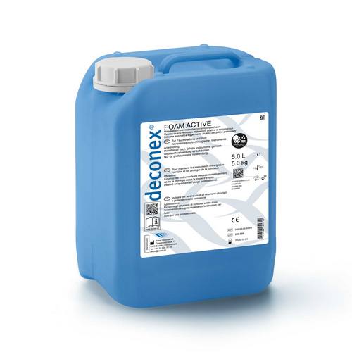 deconex® FOAM ACTIVE est une mousse nettoyante alcaline et enzymatique prête à l’emploi, formulée sur la base d’une combinaison spéciale d’enzymes et de tensioactifs qui maintient les instruments chirurgicaux humides et les protège de la corrosion pendant le transport du bloc opératoire à l’unité centrale de stérilisation.